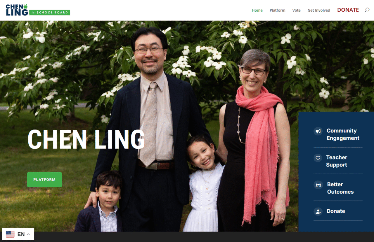 Vibrant, accessible campaign website with multilingual support for a school council candidate.